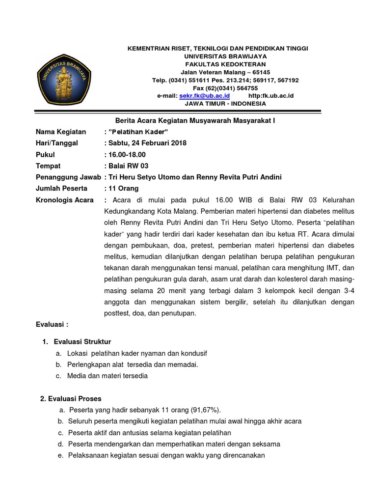 Berita acara kegiatan pelatihan. Berita acara adalah sebuah naskah dinas atau surat yang di dalamnya memuat pernyataan pengesahan tentang suatu kegiatan rapat kehilangan kerusakan dan serah terima barang penyelesaian pekerjaan kejadian peristiwa perubahan status dll. BERITA ACARA PERTEMUAN DAN PEMBINAAN. Juga sebagai dokumen tertulis untuk melengkapi dan merekam secara administratif.