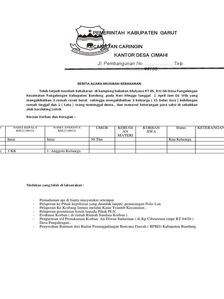 Related Posts To Contoh Berita Acara Kejadian Kebakaran Contoh Berita Acara Kejadian Kebakaran 2017-09-02T200400-0700 Rating. Contoh format surat laporan kejadian kebakaran dar. Diduga kebakaran akibat korsleting istrik di salah satu rumah yang terbakar.