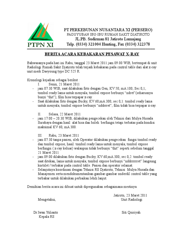 Tujuannya agar bisa menjadi laporan mengenai bagaimana kronologis kejadian dan berbagai dampak atasnya. Contoh format surat berita acara penyerahan komputer. Kebakaran hebat yang terjadi 18 tahun lalu itu berlangsung selama dua hari dan menghanguskan sekitar.