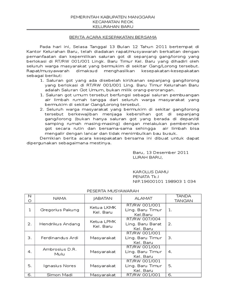 Berita acara kesepakatan bersama bpjs. Admin blog Berbagi Contoh Surat 2019 juga mengumpulkan gambar-gambar lainnya terkait contoh surat berita acara kesepakatan bersama dibawah ini. Download PDF - Berita Acara Kesepakatan Bersamadocx o0mzmz854jld. PEMERINTAH KABUPATEN MANGGARAI KECAMATAN REOK KELURAHAN BARU BERITA ACARA KESEPAKATAN BERSAMA Pada hari ini Selasa Tanggal 13 Bulan 12 Tahun 2011 bertempat di Kantor Kelurahan Baru telah diadakan rapatmusyawarah berkaitan dengan pemanfaatan dan kepemilikan saluran got di sepanjang ganglorong yang berlokasi di RTRW 001001 Lingk.