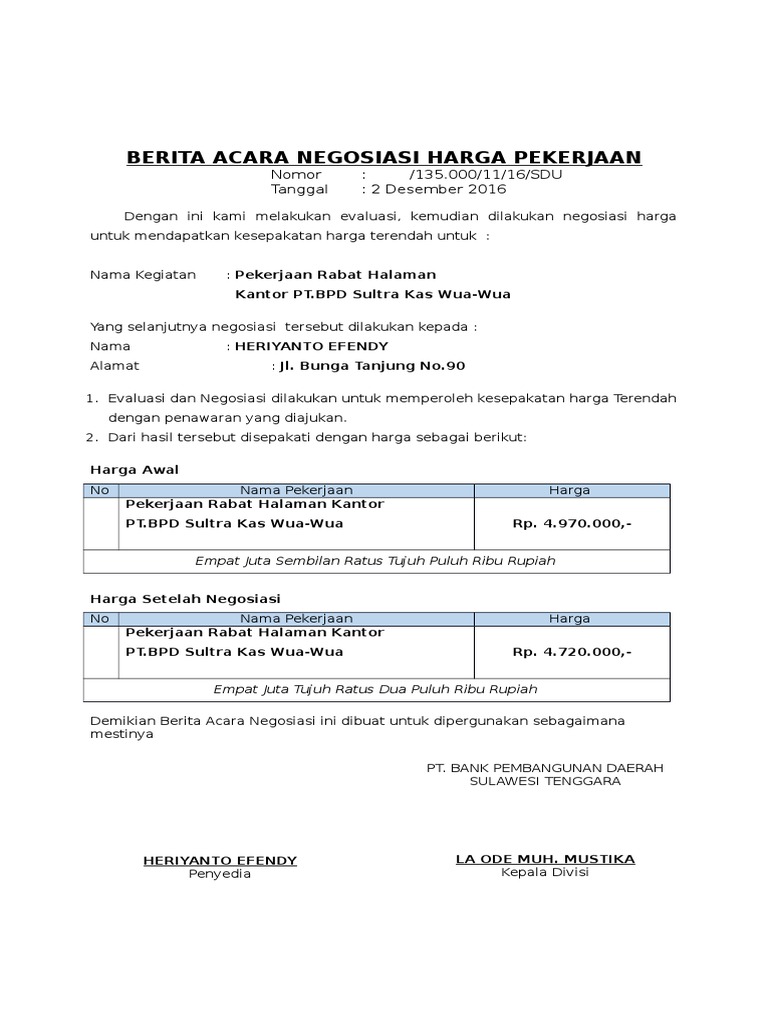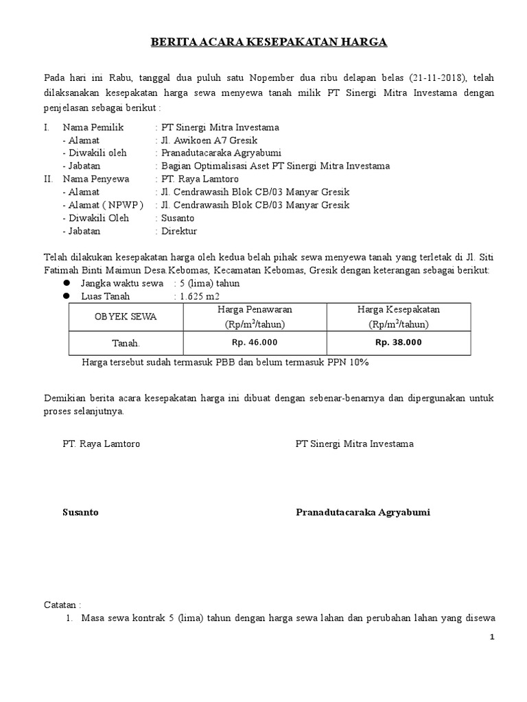 Berita Acara Kesepakatan Harga