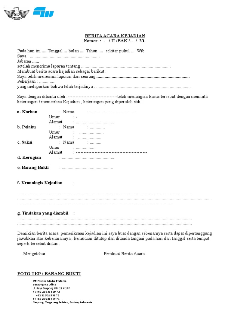 Berita Acara Kronologis Kejadian Doc