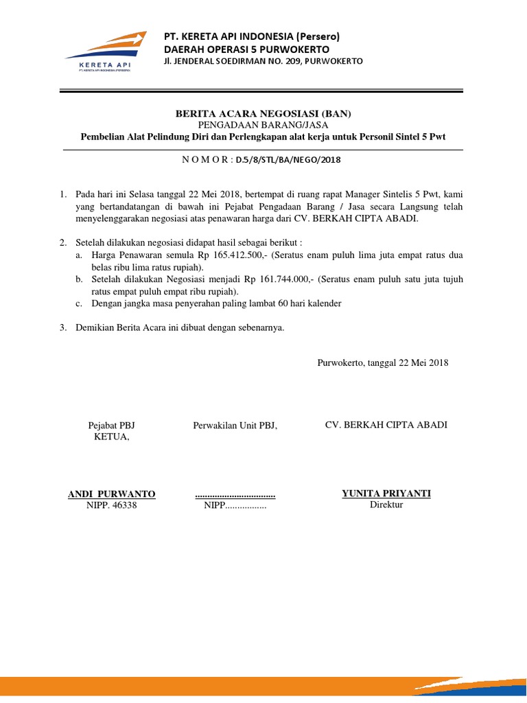 Berita acara negosiasi harga pengadaan langsung. Berita acara negosiasi mengacu pada Harga Perkiraan Sendiri HPS dan standar hargabiaya Jumlah Sasaran Kinerja. 3 Brosur Barang yang ditawarkan. Langsung seleksi umum seleksi sederhana penunjukan langsung pengadaan langsung harga perkiraan sendiri negosiasi gaji dasar biaya personil biaya non personil unit biaya personil dan spesifikasi teknis barangjasa.