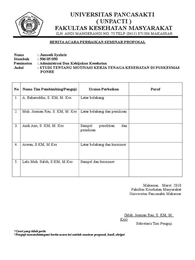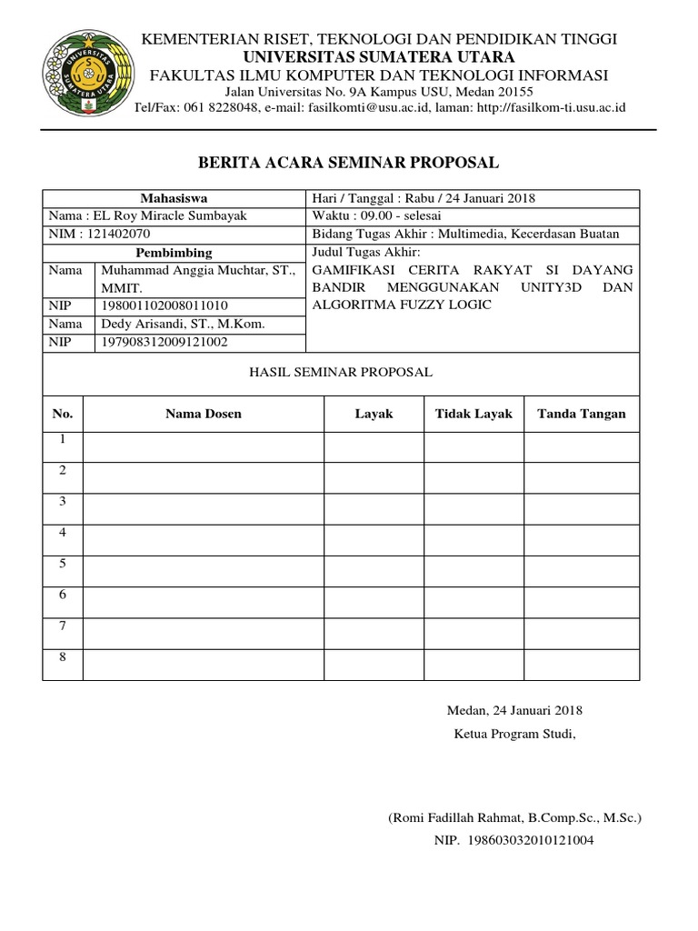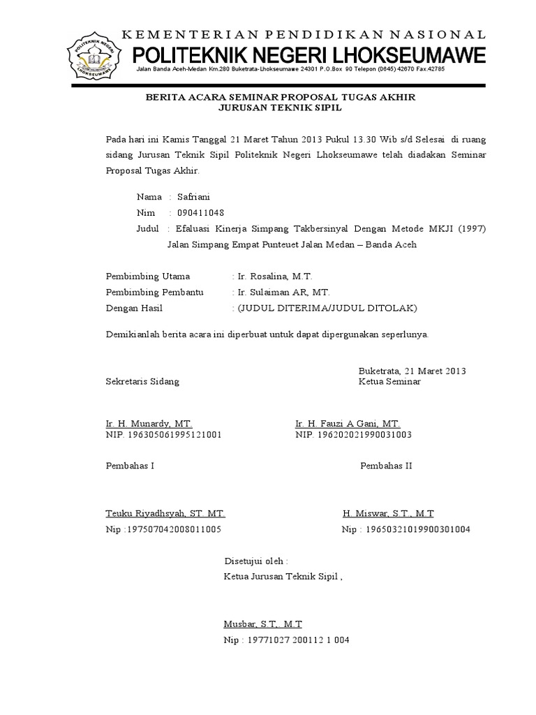 Berita acara seminar proposal. Workshop seminar pagelaran seni pertandingan olahraga diskusi ilmiah dan konser. Download Full PDF Package. Waktu dan tempat seminar proposal.