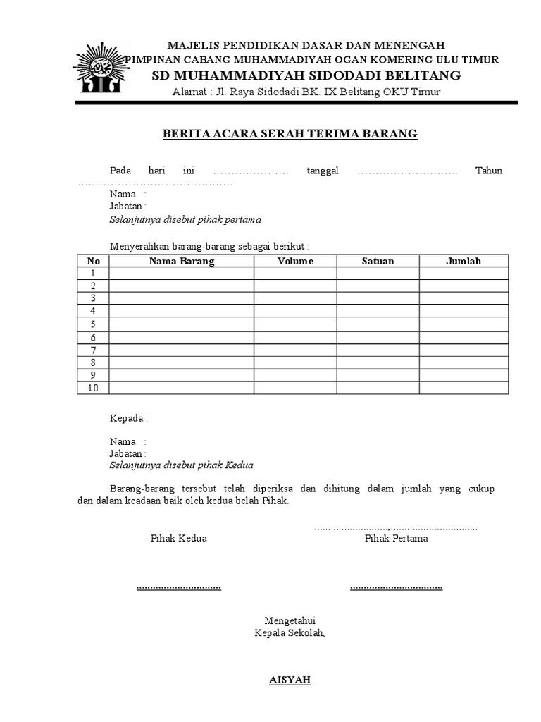 Berita acara serah terima barang bos doc. Baik itu menyangkut rapat kehilangan kerusakan serah terima barang peristiwa penyelesaian pekerjaan perubahan status dan masih banyak lagi lainnya. Contoh Surat Berita Acara Serah Terima Bendahara Para pihak pihak pertama pihak kedua. Secara garis besar berita acara merupakan sebuah dokumen dalam dunia pekerjaan yang sangat penting keberadaannya.