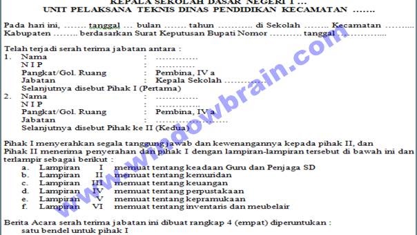 Berita Acara Serah Terima Jabatan Kepala Sekolah Dasar