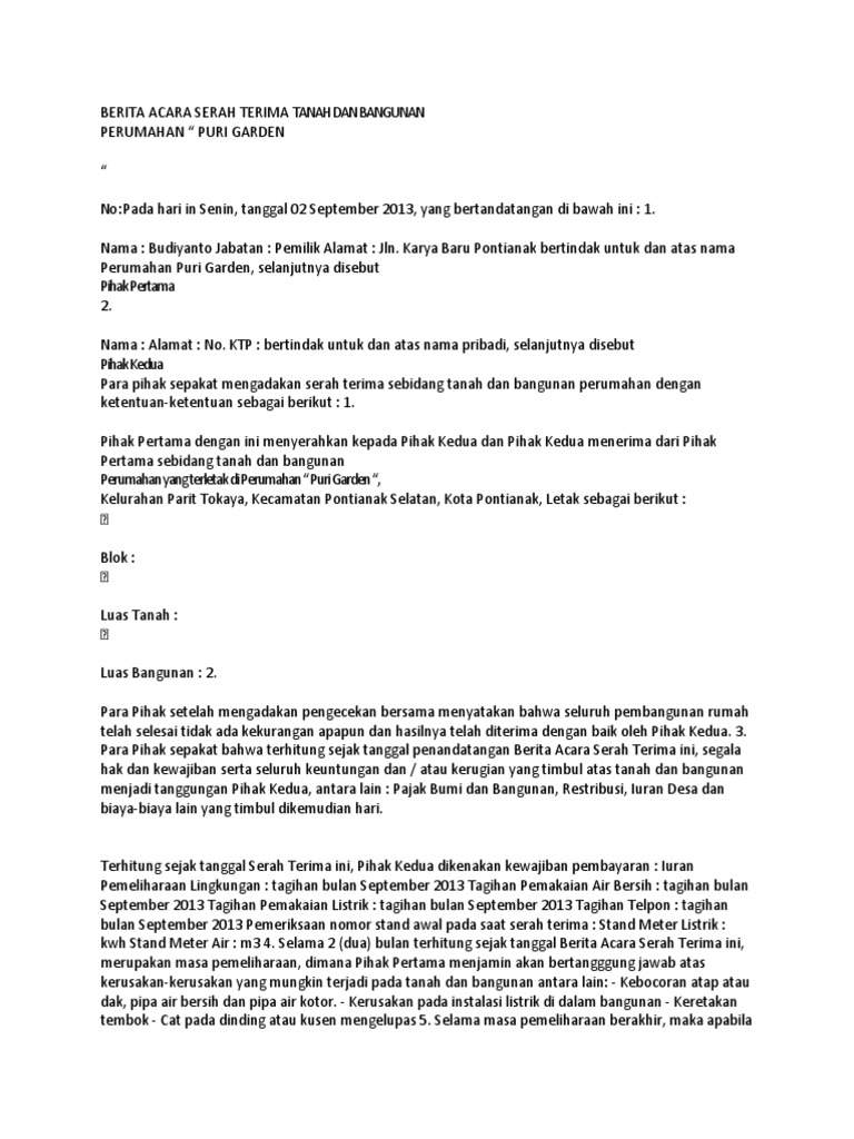 Yuk Intip Sekolah Developer Property di Indonesia. Doc Berita Acara Serah Terima Rumah Pihak I Pertama Pihak. Contoh Surat Perjanjian Jual Beli Tanah Rumah Com Doc Berita Acara Pemungutan Suara Rt Rw Babah Pitak Contoh Surat Perjanjian Jual Beli Tanah Rumah Com.