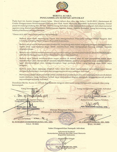 Berita Acara Sumpah In English