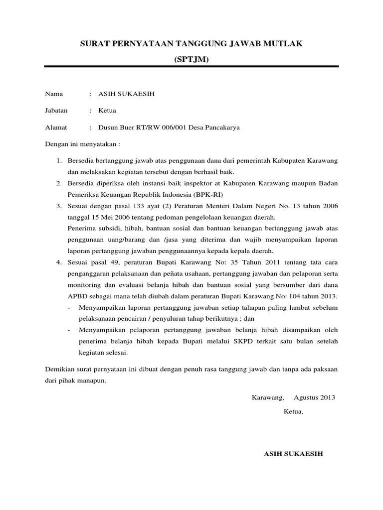 Contoh cara mengisi sptjm kebenaran data kelahiran surat pernyataan tanggung jawab mutlak sptjm kebenaran data kelahiran digunakan sebagai salah satu persyaratan pencatatan kelahiran manakala surat keterangan lahir dari dokter bidan penolong kelahiran tidak terpenuhi atau tidak ada. Surat Pernyataan Tanggung Jawab Mutlak Mon 12052016 - 1556 editor Pemerintah Indonesia saat ini melalui Direktorat Jenderal Kependudukan dan Pencatatan Sipil Kementerian Dalam Negeri sedang gencar-gencarnya mempercepat peningkatan cakupan kepemilikan akta kelahiran bagi seluruh penduduk Indonesia terlebih khusus anak-anak. Berikut Contoh SPTJM Surat Pernyataan Tanggung Jawab Mutlak Berdasarkan PERATURAN SEKRETARIS JENDERAL KEMENTERIAN PENDIDIKAN DAN KEBUDAYAAN NOMOR 21 TAHUN 2020 TENTANG PERUBAHAN.