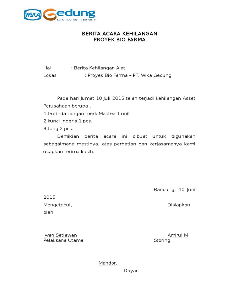 Yang mana fungsi dari berita acara kehilangan ini sebagai bukti kehilangan barang dalam suatu tempat dan kesaksian dari adanya kehilangan tersebut. Kepala sekolah yang bertanggung jawab pada inventarisasi fisik dan pengisian. Contoh surat berita acara kehilangan barang inventaris.