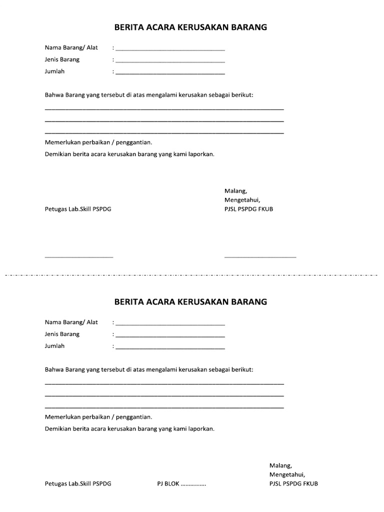 Contoh Berita Acara Kerusakan Barang. Lampiran 1 satu lembar Perihal Pemeriksaan Kerusakan kapal dan Kepada Pemeriksaan Persiapan dock kapal Yth. Misalnya ada surat berita acara kegiatan surat berita acara kehilangan atau bisa juga surat berita acara serah terima barang.