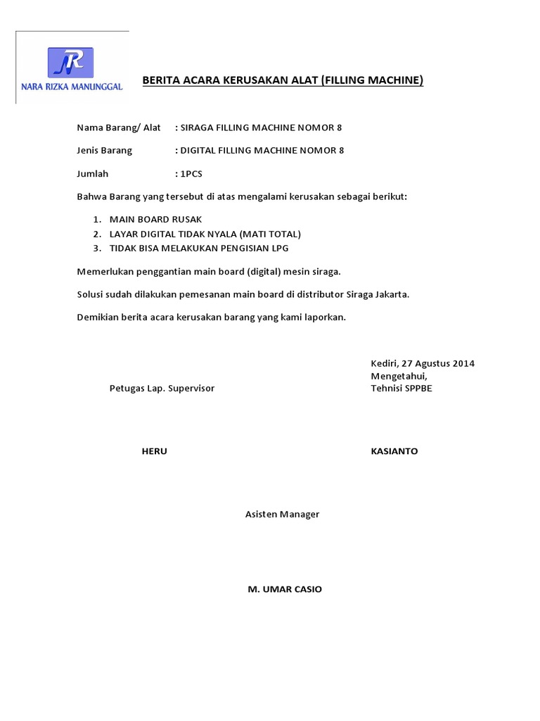Pecah Kronologis kejadian karena terinjak kaki saat akan menangkap kucing Padang 23 April 2018 Hormat Saya Dany Fasera PELAKU. Flucktuation Stock yaitu untuk menjaga fluktuasi permintaan yang tidak diperkirakan sebelumnya dan untuk mengatasi bila terjadi kesalahan atau penyimpangan dalam rencana penjualan waktu produk atau pengiriman barang. Demikian berita acara kerusakan barang inventaris terbaru tahun 2018 yang dapat saya bagikan semoga bermanfaat.