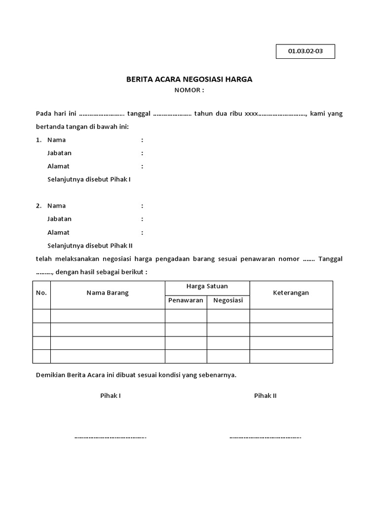 Contoh Berita Acara Negosiasi Teknis Dan Harga Gawe CV January 17 2021 Contoh Berita Acara Pada pembahasan Contoh Berita Acara Negosiasi Teknis Dan Harga yang merupakan poin penting dalam banyak kegiataan berita acara karena menurut Gawe CV pengetahuan dalam cat kali ini diperlukan untuk dikuasai dalam setiap bidang aspek kegiatan. Negosiasi terdiri dari Negosiasi Teknisdan Negosiasi Harga. Kompleks Perkantoran Padang Kempas - Pondok Pusaka Bintuhan Acara.