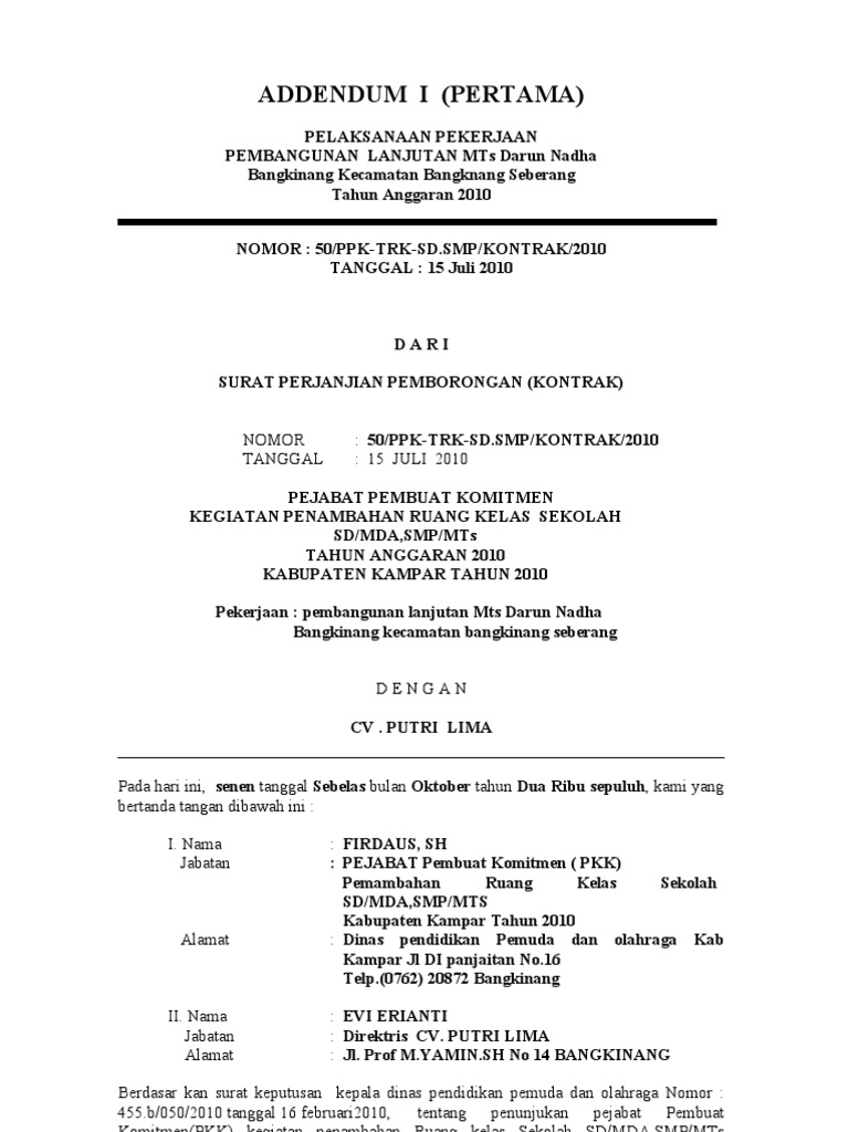 Download View Contoh Adendum Kontrak pekerjaan Tambah Kurang as PDF for free. Ada tidak ada 7 Foto kegiatan 0 50 100. Contoh berita acara kehilangan contoh berita acara kerusakan contoh berita acara pemeriksaan contoh berita acara kejadian contoh berita acara pembayaran contoh berita acara penyerahan barang contoh berita acara rapat contoh berita acara pemeriksaan.
