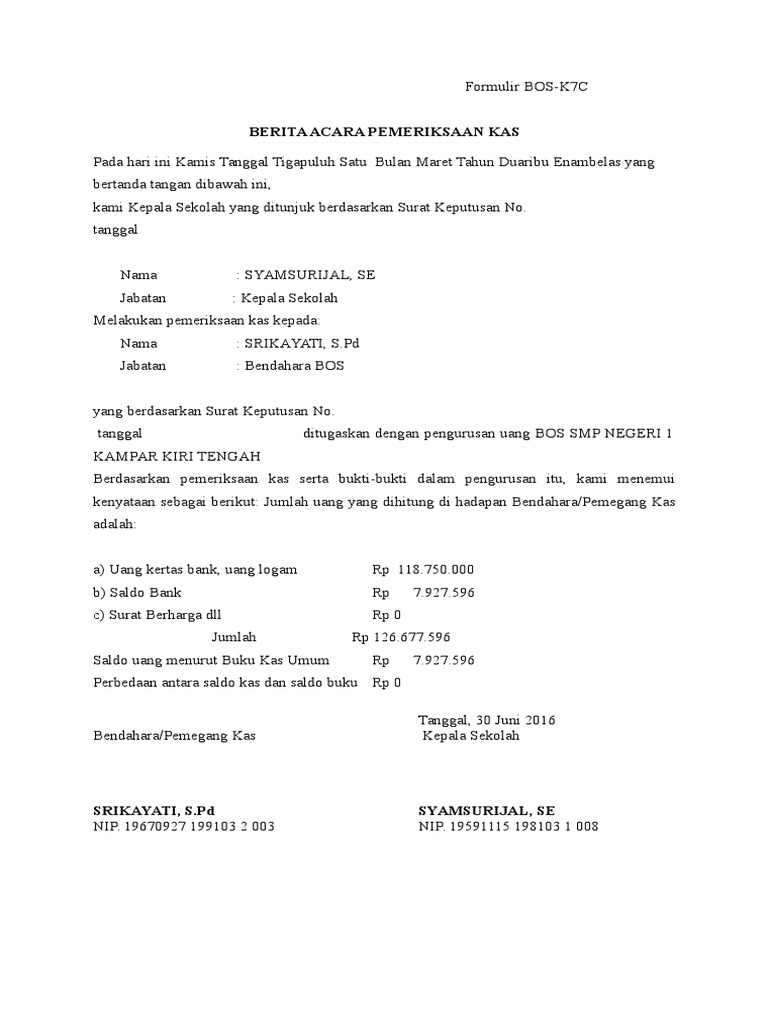 Format Bos K7c Berita Acara Pemeriksaan Kas