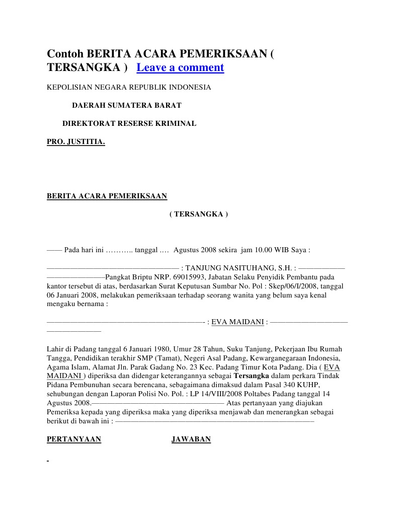 Contoh Berita Acara Pemeriksaan Saksi Pdf
