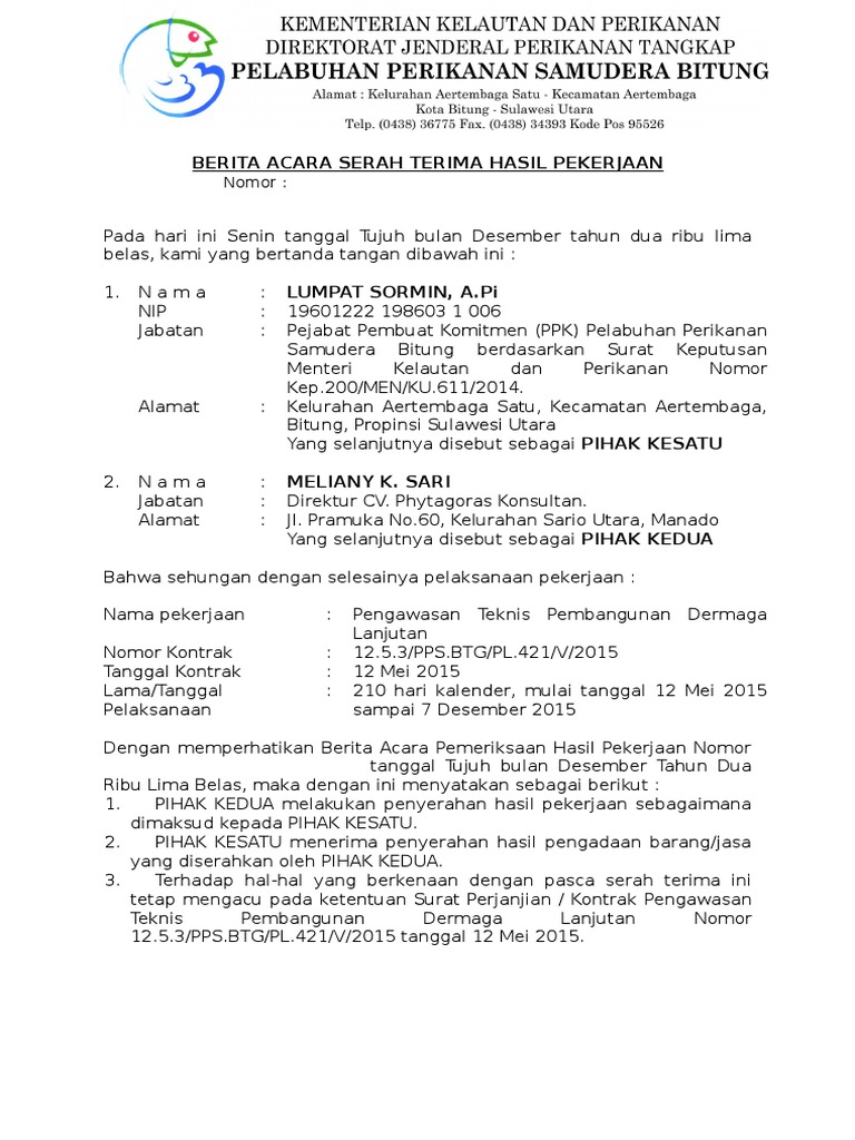 The collection that consisting of chosen picture and the best among others. Membuat dan menandatangani Berita Acara Serah Terima Hasil Pekerjaan. Hasil pemeriksaan dibuatkan Berita Acara Serah Terima BarangPekerjaanJasa.