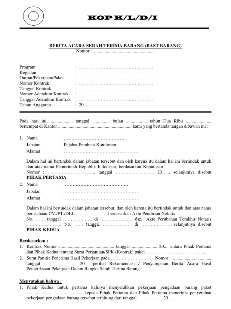 Berita Acara Serah Terima Barang Tanggal Tanda Menyerah