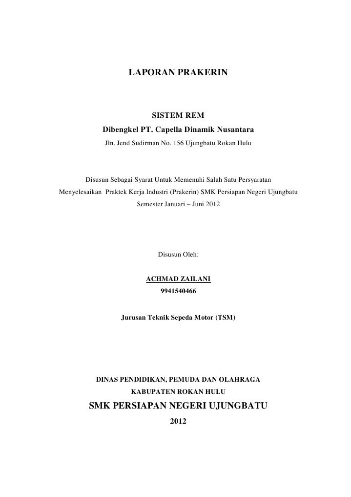 Al Lilah Nur Hasanah. LAPORAN PRAKTEK KERJA INDUSTRI Prakerin SMK AL-BAISUNY 2014-2015 Ahmad Fauzi By Ahmad Sayadi. Contoh Laporan Prakerin Smk Teknik Sepeda Motor BAB 1 PENDAHULUAN.