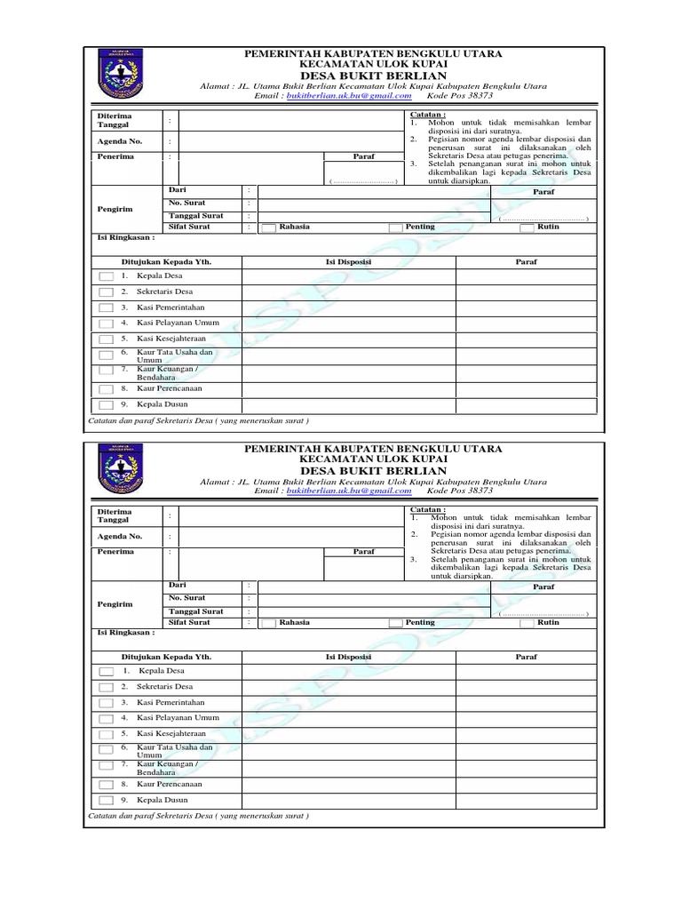 Contoh Lembar Disposisi Desa