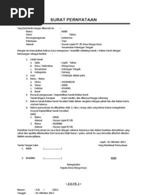 Contoh surat keterangan tanah pdf. Surat Pernyataan Tanah Tidak Sengketa Dari Desa Contoh. The collection that consisting of chosen picture and the best among others. Buruh Tani Pekebun NoKTP.