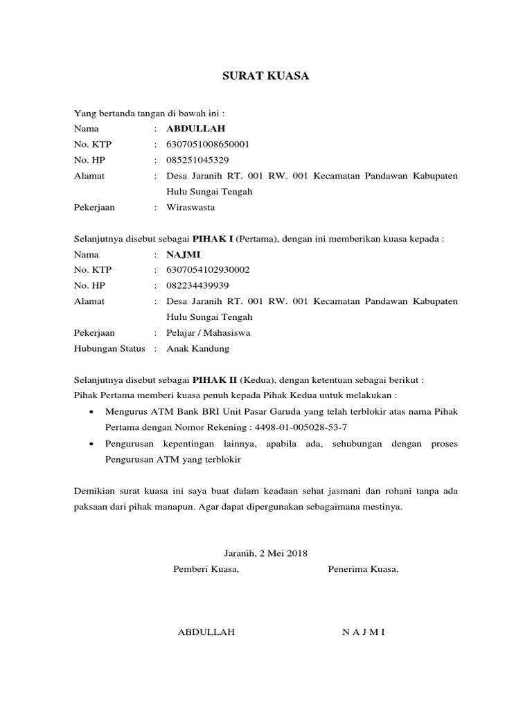 Contoh Surat Kuasa Atm Terblokir Download Kumpulan Gambar