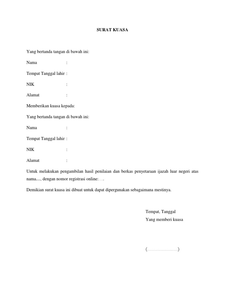 30 Full PDFs related to this paper. Misalnya surat kuasa untuk perwakilan pengambilan ijazah pengambilan uang gaji pengambilan paspor pengambilan dokumen-dokumen penting dan lain-lain. Danang Setya Ariawan Rahmadan Tempat Tanggal Lahir.