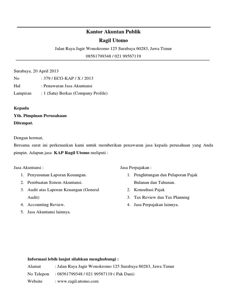Contoh Surat Penawaran Jasa Konsultan Akuntansi Dan Pajak