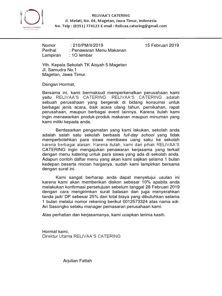 Contoh Surat Penawaran Produk Makanan Dan Minuman