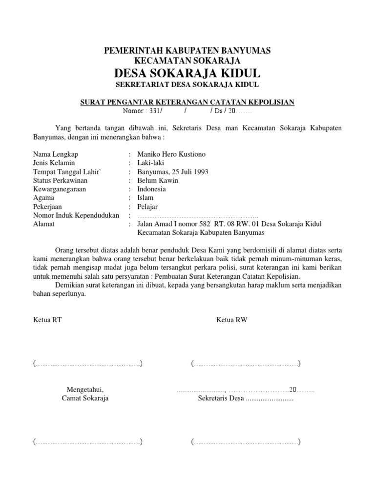 Contoh Surat Pengantar Rt Untuk Pembuatan Skck