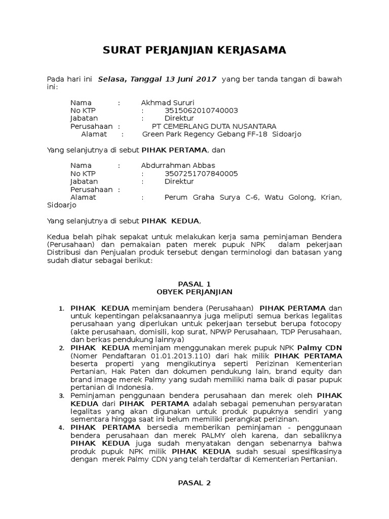 Contoh surat perjanjian kerjasama pinjam bendera perusahaan. The collection that consisting of chosen picture and the best among others. Selanjutnya setiap contoh surat perjanjian kerjasama yang Anda temukan akan memiliki susunan yang jelas. Hal ini sebenarnya bukan hal yang baru lagi dimana setiap perusahaan tentu ingin bekerjasama dengan perusahaan - perusahaan lain agar bisa saling menguntungkan.