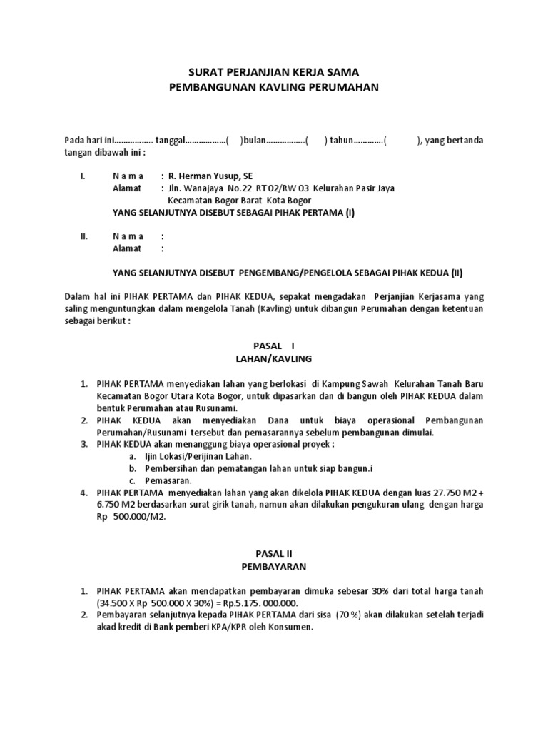Contoh Surat Perjanjian Kontrak Kerja Proyek Pdf
