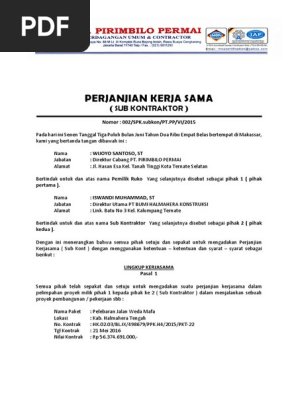 Doc Perjanjian Kerja Sama Sub Kontraktor Dpd Askonas Sulteng Academia Edu