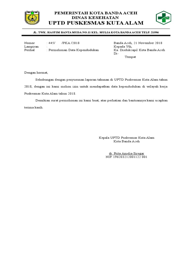 Contoh surat permohonan untuk meminta data kependudukan. Setelah Bupati memberikan ijin pemanfaatan dan akses data pihak pemohon membuat surat pernyataan untuk tidak menyalah gunakan pemanfaatan data. Juni 2 2017 Juni 2 2017.
