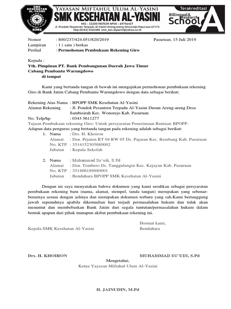 031 531 0838 Email. Contoh Surat Permohonan Pembukaan Rekening Bank Rahasia Ngbreheh Surat Rekening Bank. Admin dari blog Bagi Contoh Surat 2019 juga mengumpulkan gambar-gambar lainnya terkait surat permohonan pembukaan rekening bank jatim untuk sekolah dibawah ini.