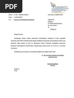 Contoh surat permohonan pembongkaran bangunan. Contoh Surat Permohonan Izin Bongkar Gedung baik dan benar. Menyusul surat Kami nomor. 2 dari 5 halaman.