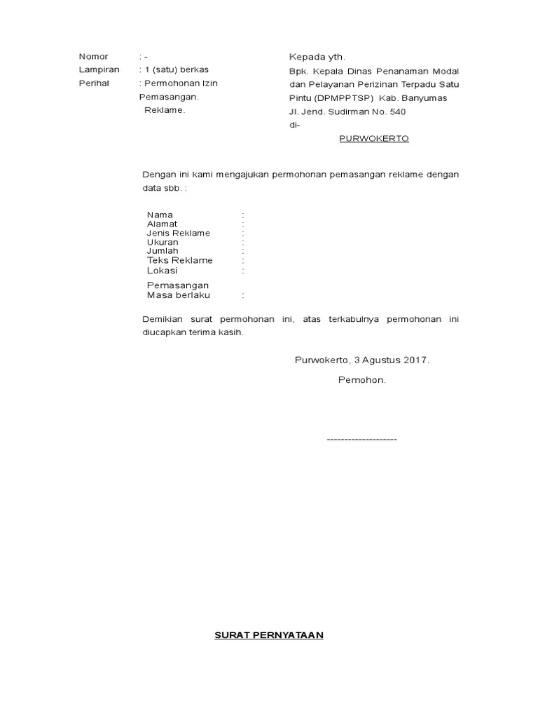 Contoh Surat Permohonan Setiap orang pasti pernah mengalami kesulitan entah seberapa matang rencana yang telah dibuat. Contoh Surat Permohonan Wakaf. Gambar denah titik lokasi pemasangan reklame.