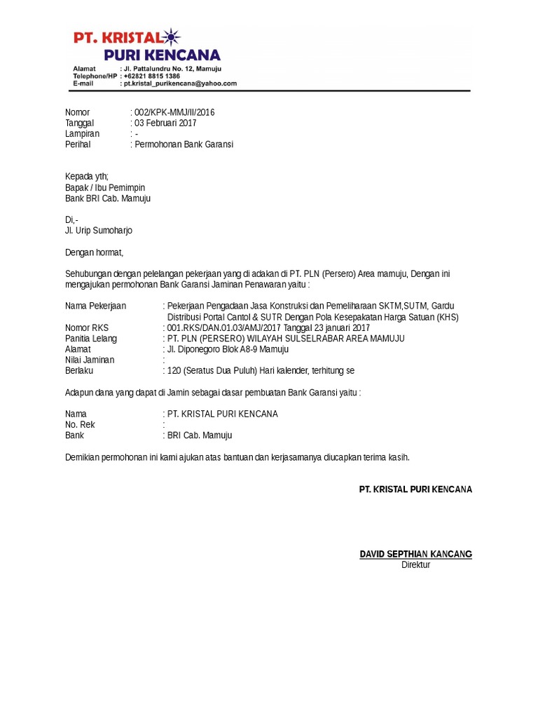Xxxx sebesar Rp 100000000 satu juta rupiah atas nama Kukuh Bima Perkasa beralamat di Jl. Contoh Surat Permohonan Pencairan Garansi Bank have a graphic from the otherContoh Surat Permohonan Pencairan Garansi Bank It also will feature a picture of a kind that may be seen in the gallery of Contoh Surat Permohonan Pencairan Garansi Bank. Dunia Perbankan dan Jaminan Keamanan Nasabahdikeluarkan.