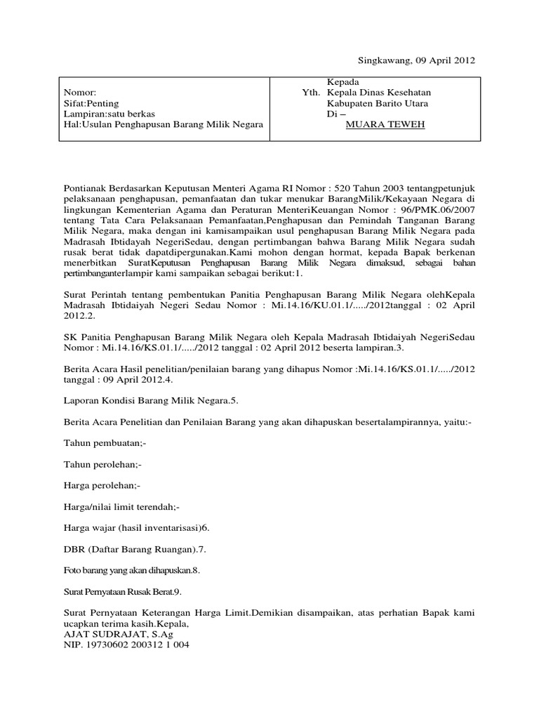 Pdf Contoh Surat Izin Penghapusan Barang Milik Daerah Atharuddin Ssos Academia Edu