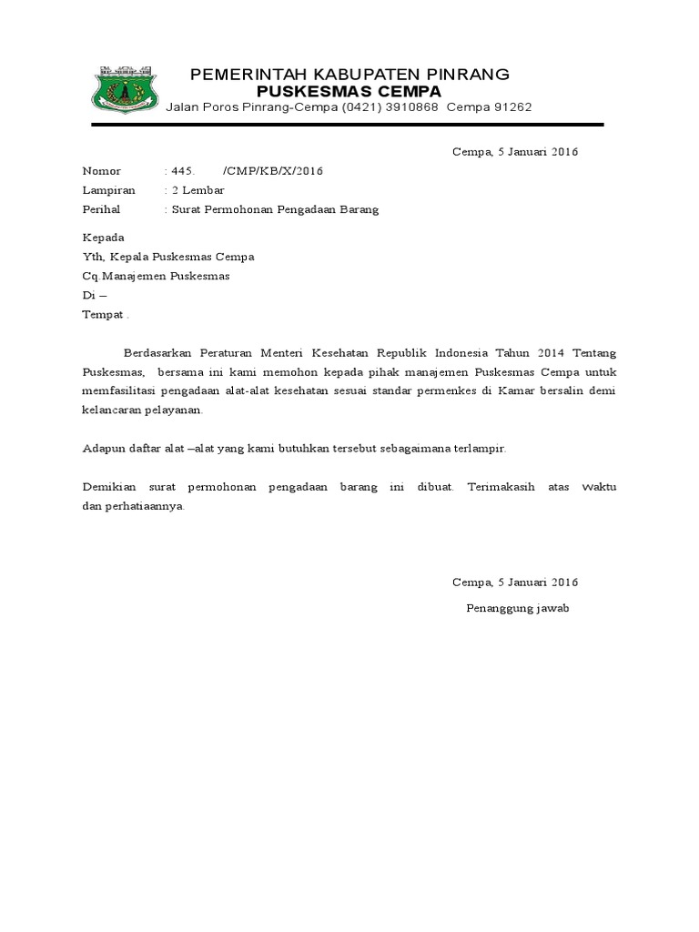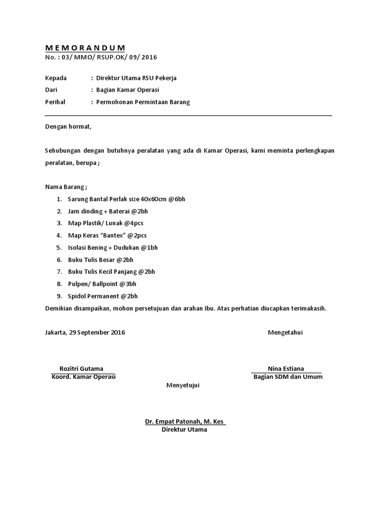Contoh Surat Permohonan Permintaan Barang Doc