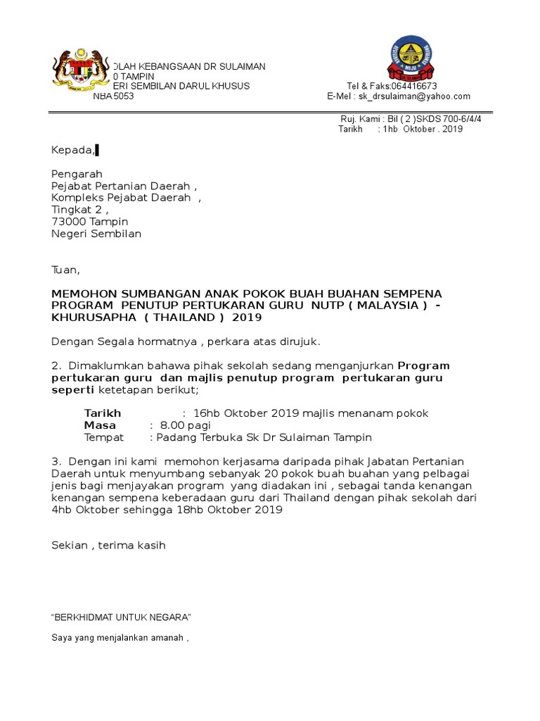 Contoh Surat Memohon Sumbangan Pibg. This school is situated in Jasin Melaka. 98 46 98 menganggap dokumen ini.