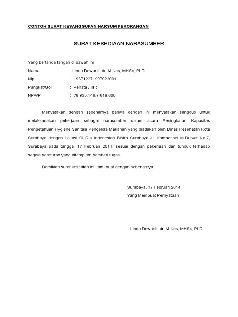 Contoh Surat Pernyataan Kesanggupan Menyelesaikan Pekerjaan Doc