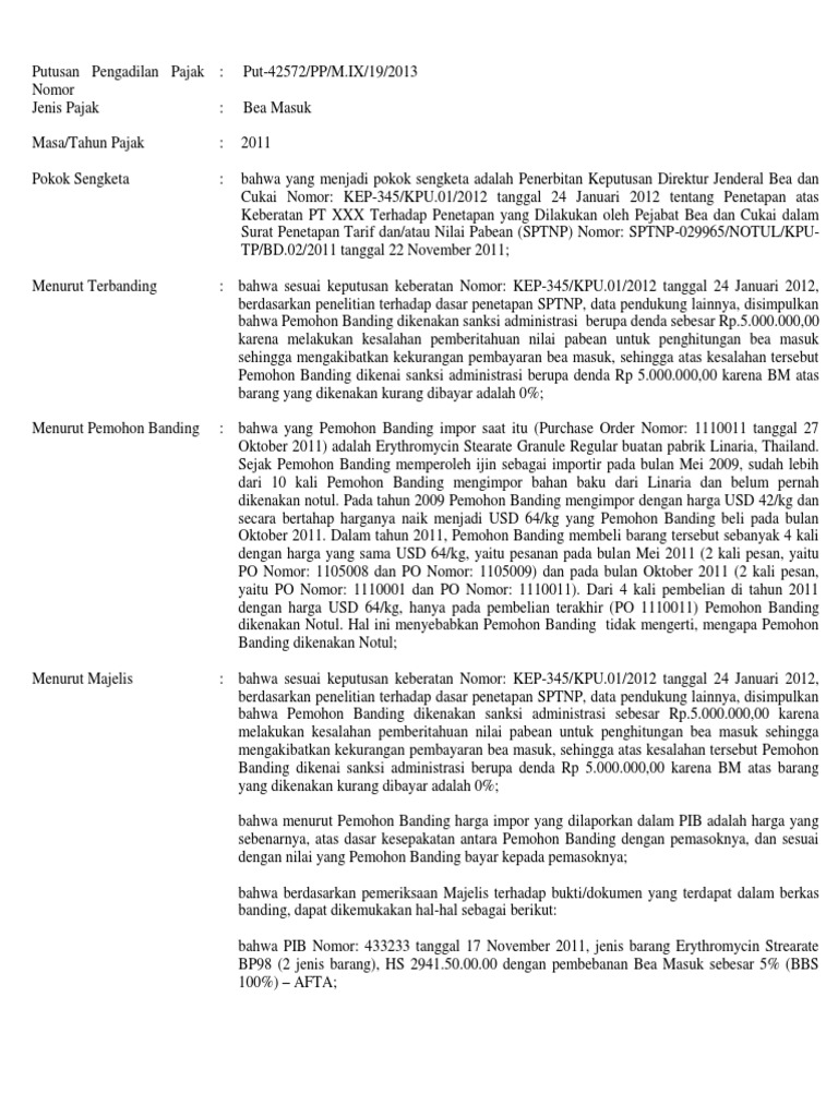 Contoh surat putusan banding pajak. Kata Krosbin saat membacakan putusan di Pengadilan Pajak Jakarta Jumat 273. Peninjauan Kembali 9PK Ke Makamah Agung MA 1. Atas Keputusan Direktur Jenderal Pajak Nomor KEP-222WPJ2202013 tanggal 12 Desember 2013 tentang keberatan atas SKPKB PPN Nomor Rp10000000000 sebelum pengajuan keberatan.