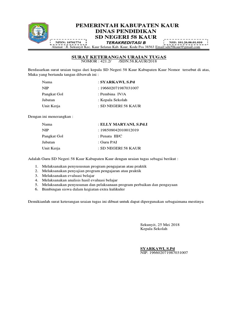 Alamat Jalan Raya JenggawurKecBanjarmanguKabBanjarnegara. Uraian tugas kepala sekolah 1. Yaitu surat resmi yang digunakan instansi pemerintah untuk kepentingan adminiustrasi pemerintahan.