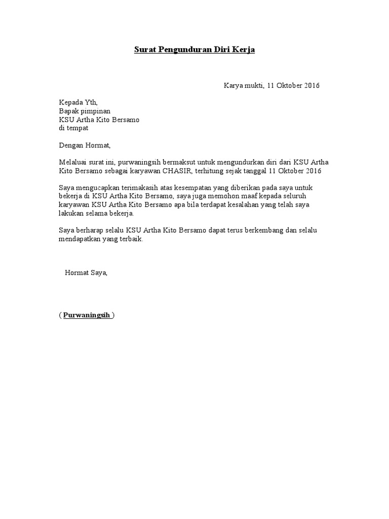 Detail Doc Surat Pengunduran Diri PDF dapat kamu. Itulah tadi contoh surat pengunduran diri semoga contoh surat pengunduran diri ini dapat bermanfaat bagi Anda dan Anda mendapat hal yang lebih baik. Diri sederhana download surat pengunduran diri karyawan contoh surat pengunduran diri kerja yang baik dan sopan contoh surat.