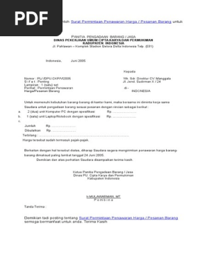 Surat itu bermaksud meminta kepada penjual agar memberikan penawaran sacara resmi. Contoh Surat Penawaran Kini surat penawaran menjadi hal yang sangat penting khususnya dalam bidang perdagangan. 15 Contoh Surat Permintaan Penawaran Barang dan Jasa - Bagi sebuah perusahaan penggunaan surat sebagai media komunikasi merupakan hal yang wajib untuk dilakukan.