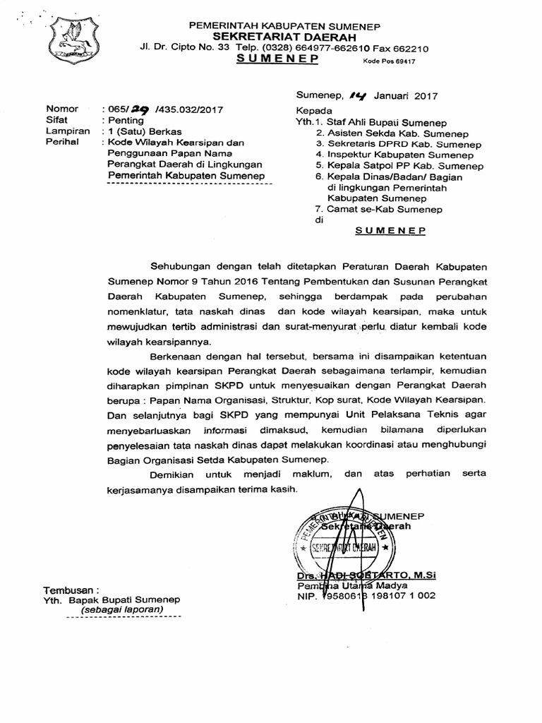 Surat Edaran Sekretaris Jenderal Kementerian Pendidikan Nasional Nomor 6196AA5SE2011 tentang Kepala Surat Kode Unit Organisasi Kode Unit Kerja dan Cap Dinas di Lingkungan Kementerian Pendidikan Nasional sebagai berikut. Untuk surat-surat dinas di Indonesia tanda tangan penulis surat lazimnya juga dilengkapi dengan cap atau. Contoh Kepala Naskah Dinas selain Peraturan Keputusan Instruksi dan.