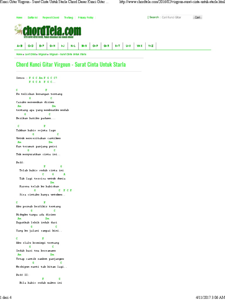 Chordtela Surat Cinta Untuk Starla