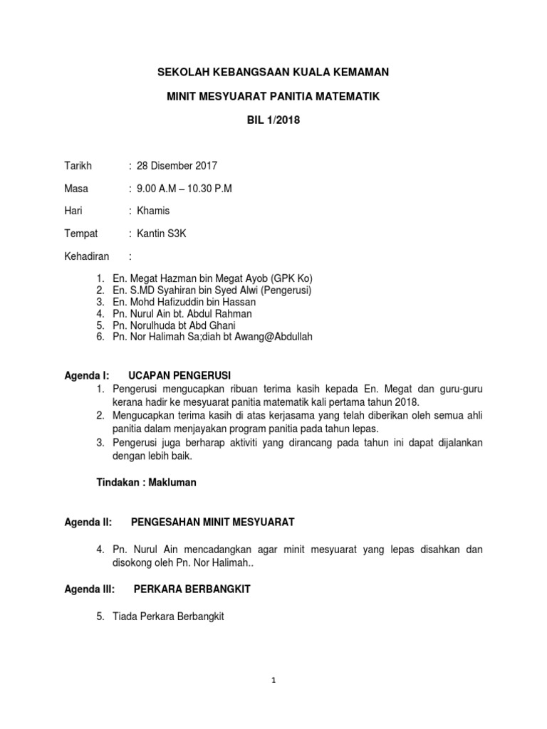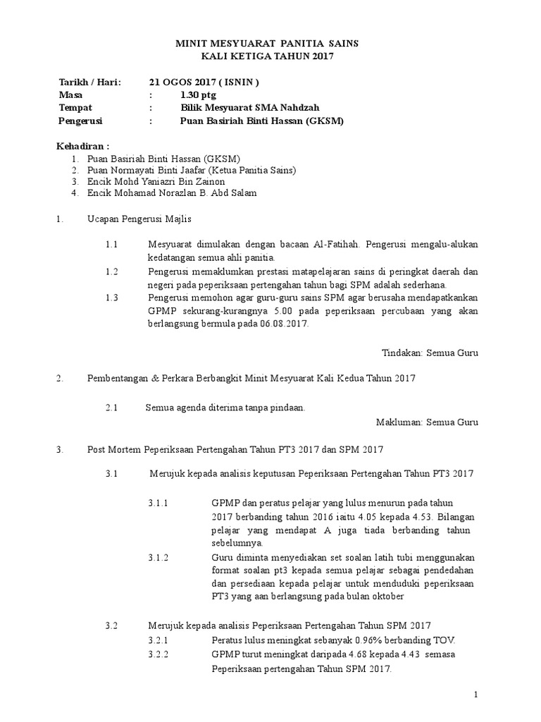 830 pagi KEHADIRAN - Ketua Panitia Pengerusi 1. Minit mesyuarat panitia sains kali ketiga. For more information and source see on this link.