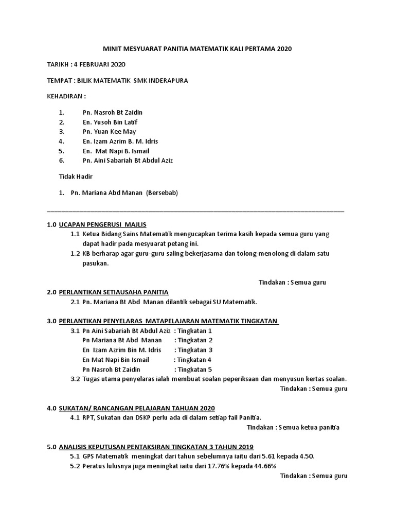Minit mesyuarat panitia sains kali pertama 2020. En azura binti ali gpk kokurikulum 2. Minit mesyuarat panitia sains kali pertama 2015. 28 April 2011Hari.